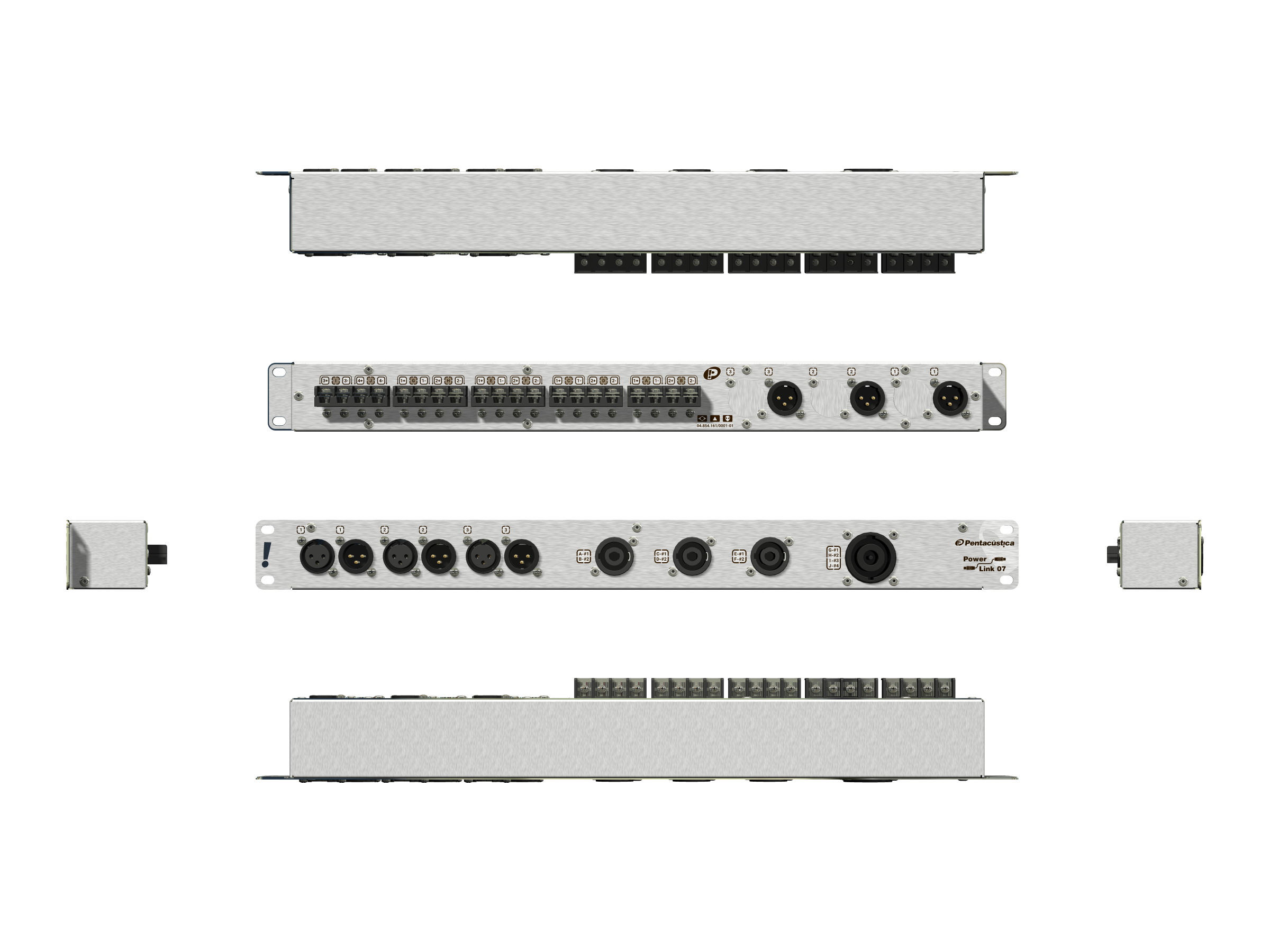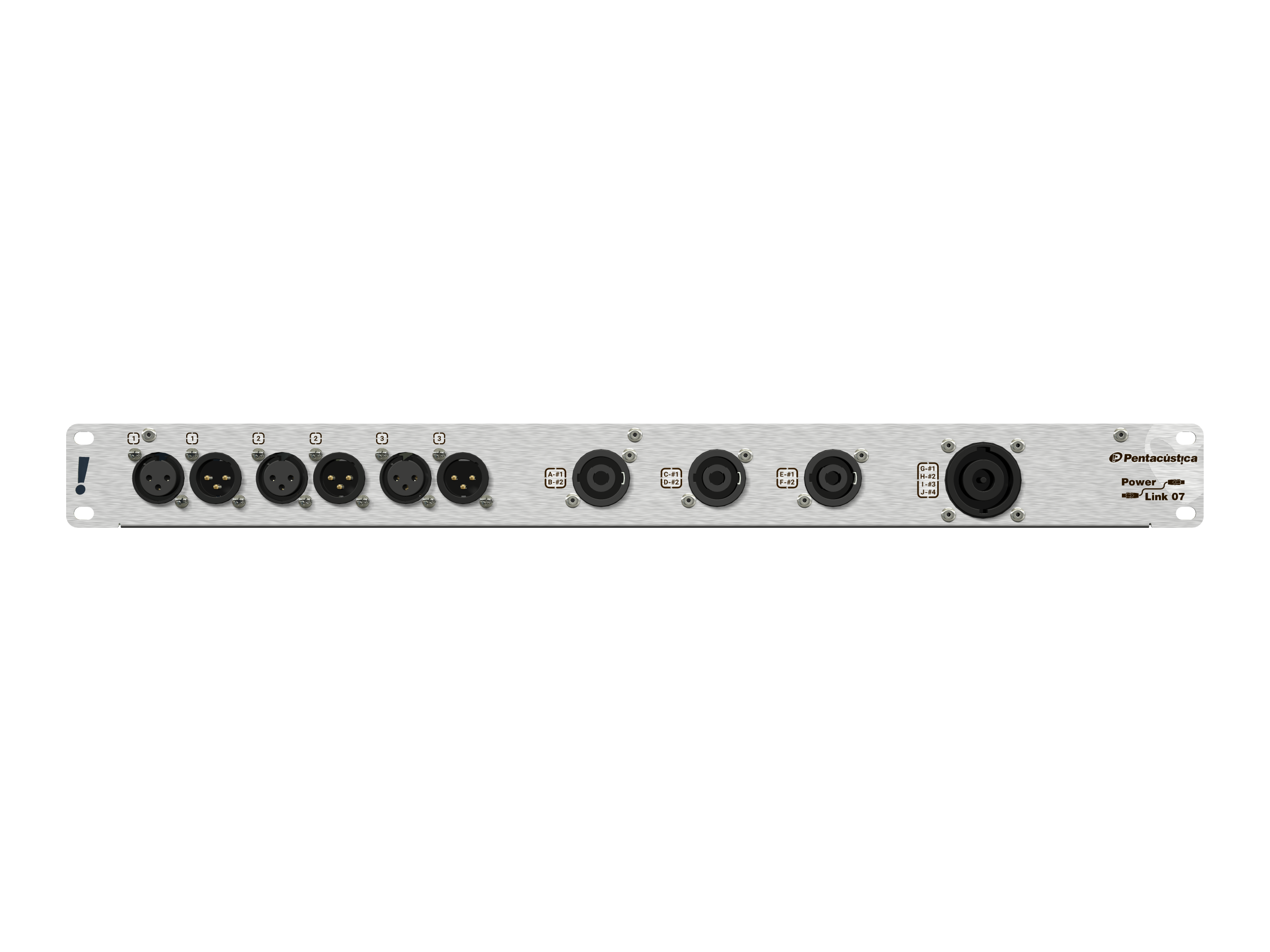 Saídas frontais para sinais de potência com 3 SpeakON de 4 polos e 1 de 8 polos.
